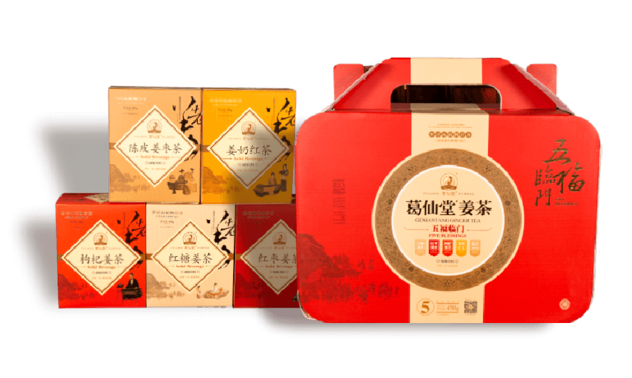 葛仙堂姜茶系列產品以羅浮山種植藥用小黃姜為主要原料之一,特別選用道地原料:寧夏中衛枸杞、新疆阿拉爾小灰棗、三年以上新會陳皮、廣東羅定肉桂等,君臣佐使,科學配比,創新運用真空負壓低溫提取+循環升溫干燥工藝精制而成,使產品品質及效果得到保證。